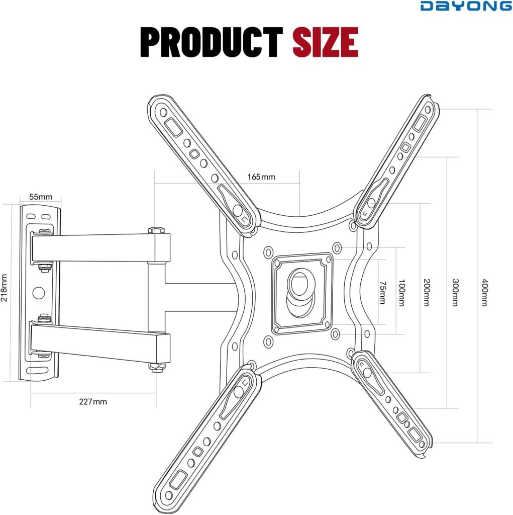 Full Motion TV Wall Mount for Most 14-60 Inch TVs, Single Stud Articulating TV Mount Bracket with Swivel, Tilting, Extension, Max VESA 400x400mm, Holds Up to 25 kg